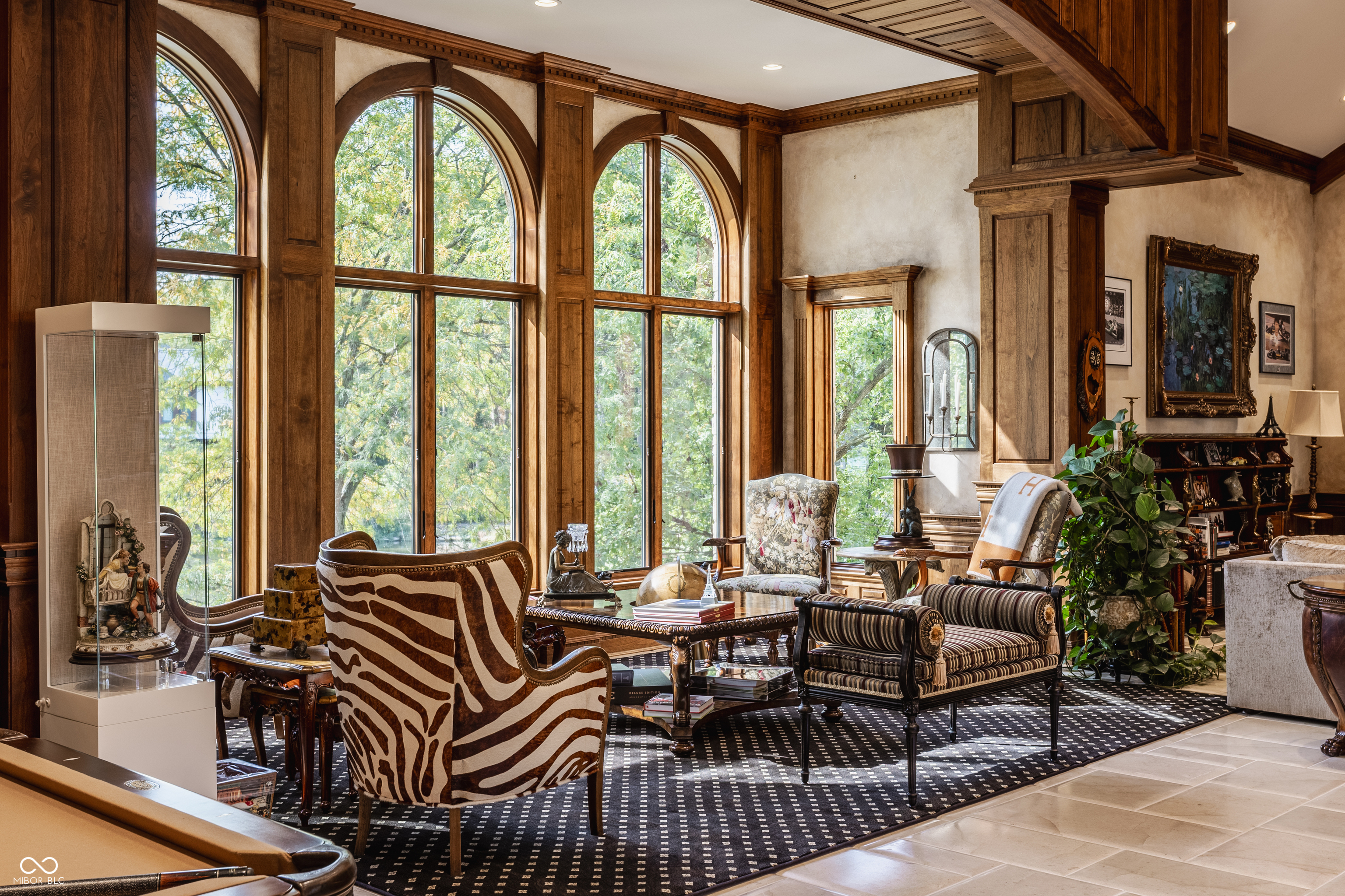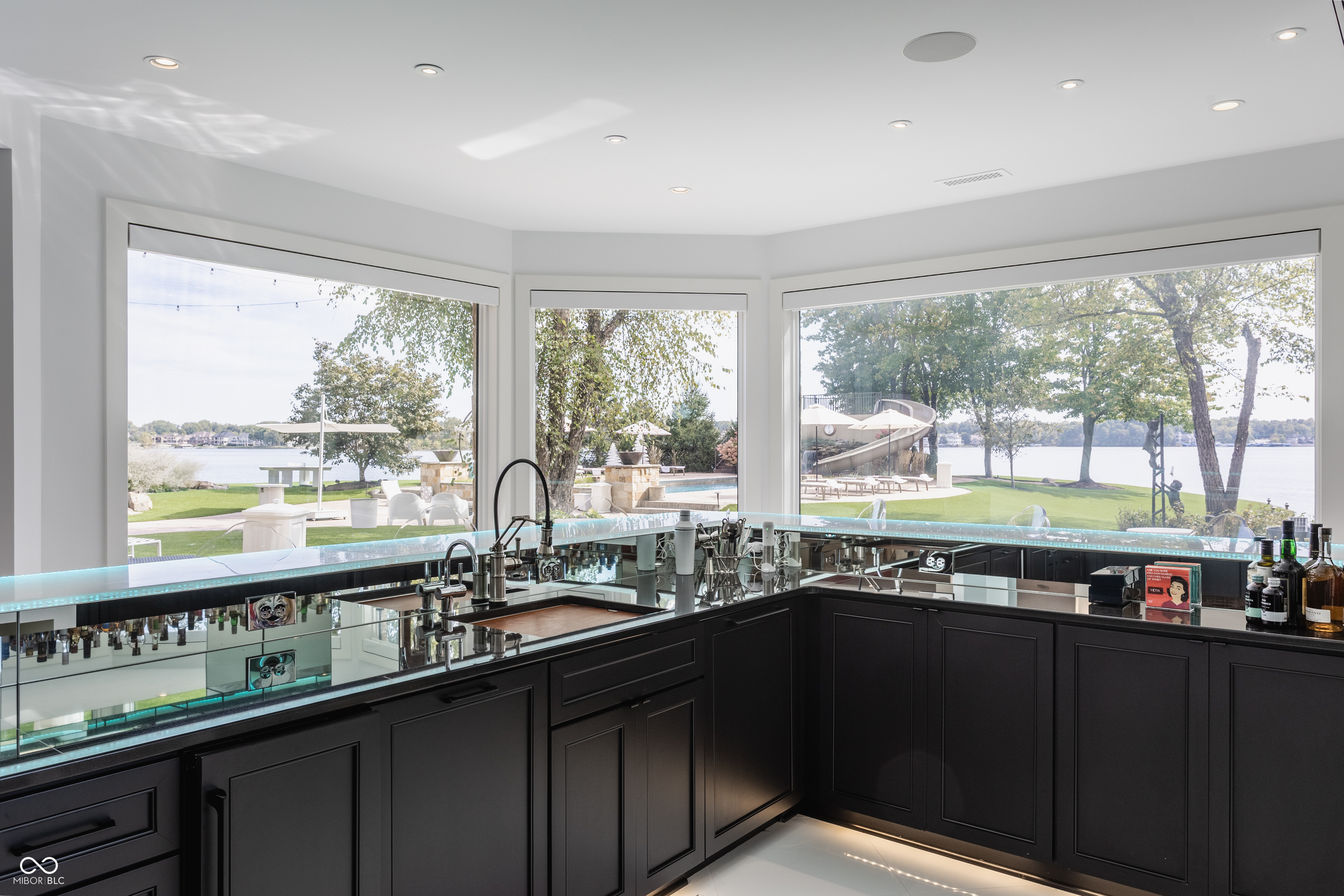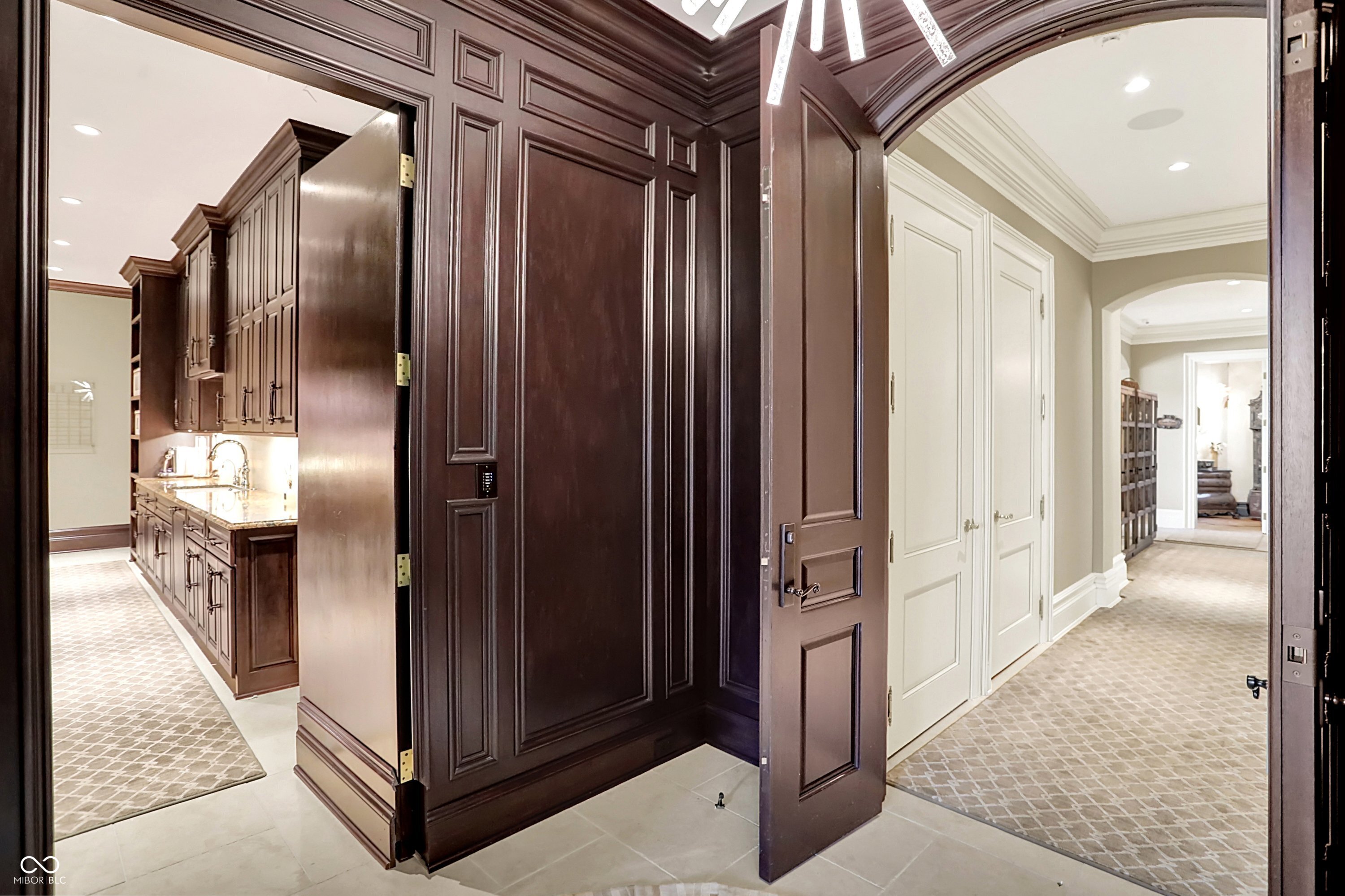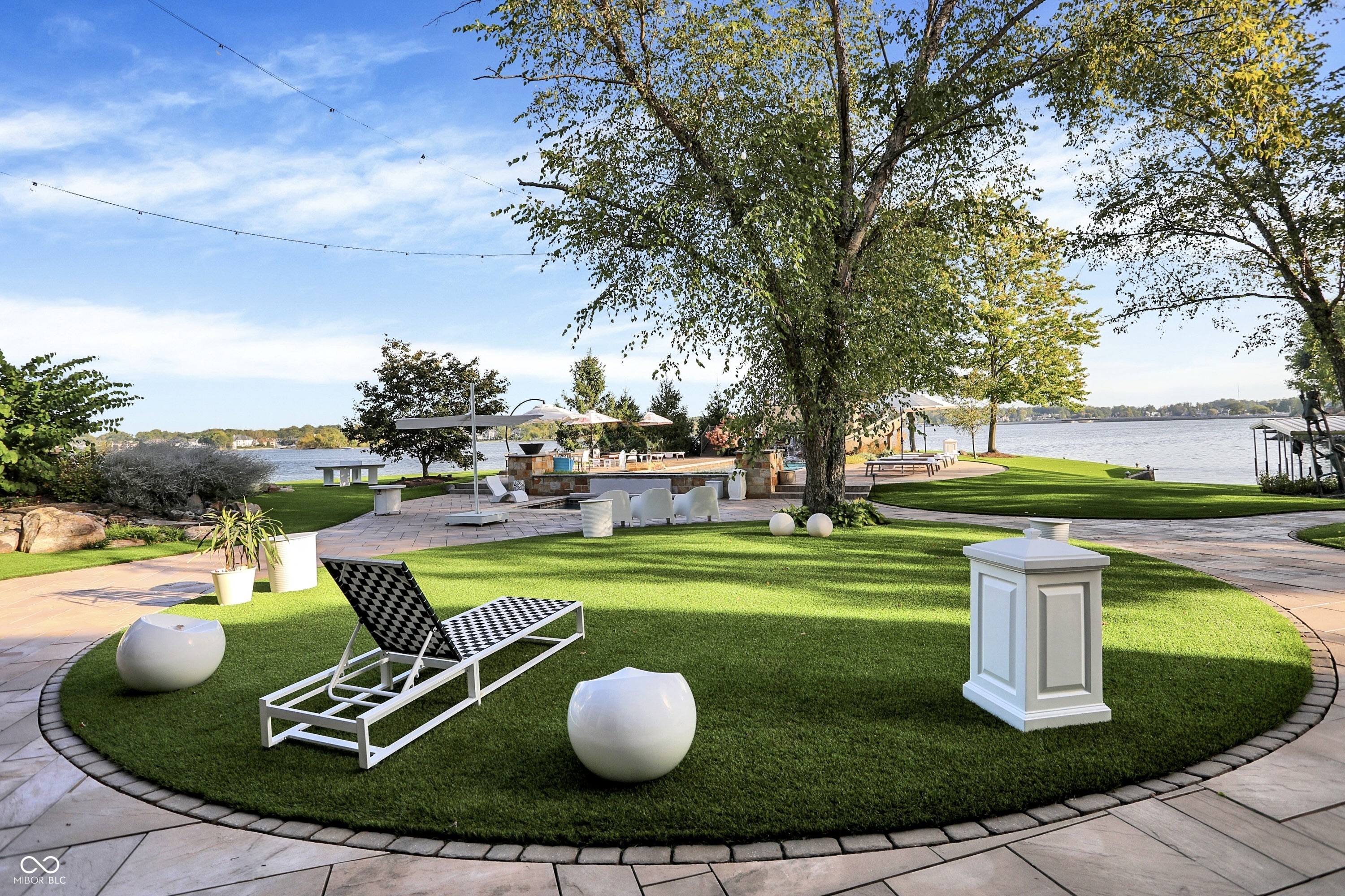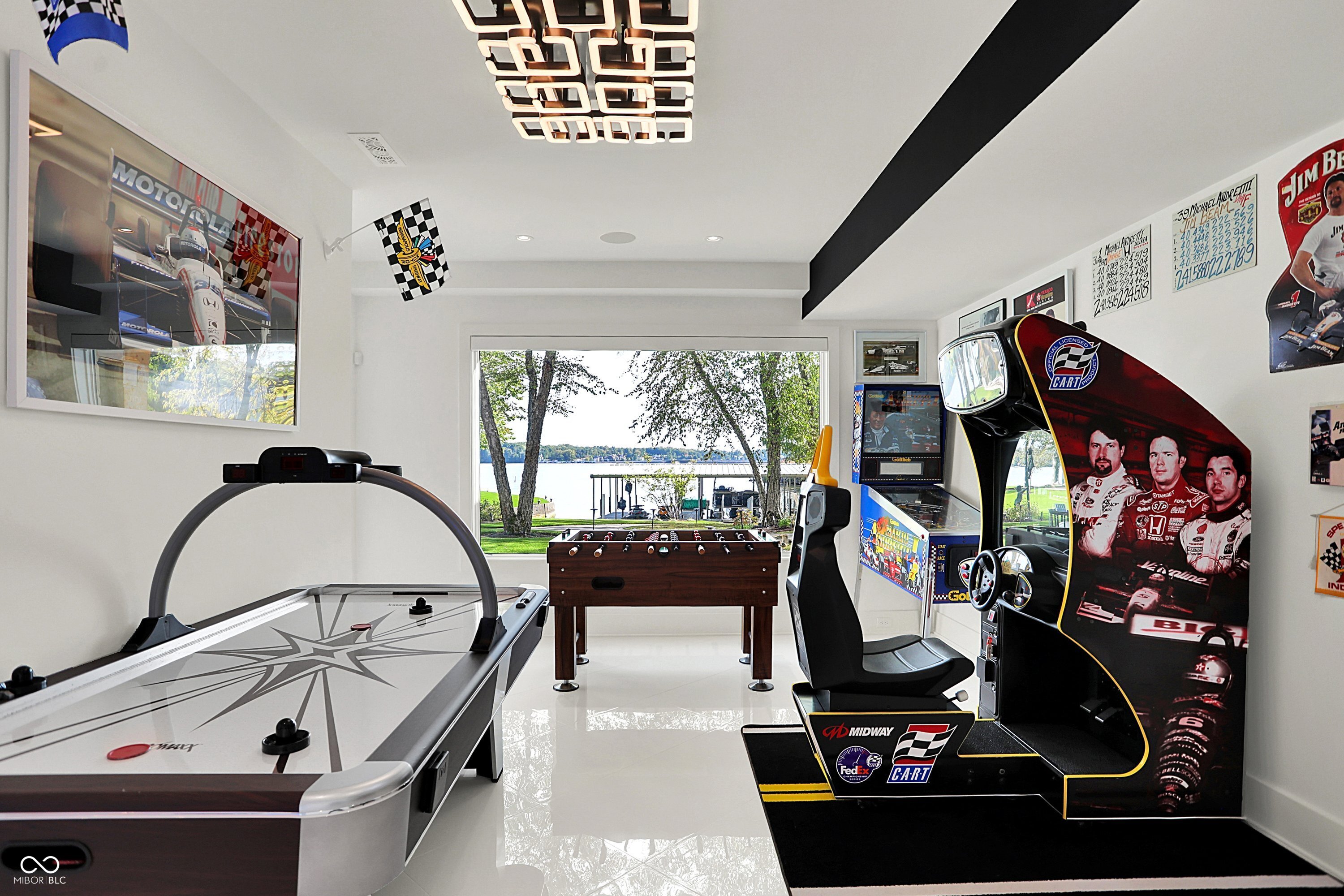 Set on 5.23 PRIVATE ACRES with 570' of pristine Geist Reservoir shoreline, this 21,000 sq ft gated waterfront estate redefines Midwestern luxury. A gas-lit, tree-lined drive leads to The Andretti Estate, featuring 9 bedrooms, 12 bathrooms, 7 fireplaces & surrounded by manicured lawns, wooded trails & sweeping open-water views. Inside, craftsmanship & technology merge seamlessly with integrated automation, a three-level elevator & advanced security enhancing everyday life. The main level unfolds with breathtaking vistas from every gathering space, including a fireside study that leads to the estate lounge with bar, billiards area & sitting rooms. The culinary space showcases dual kitchens: a discreet caterer's kitchen is steps away from the primary, featuring commercial-grade appliances, a 14' island, and seamless flow to a 38' heated veranda with grilling area, retractable screens, and sweeping lake views. An elegant anteroom leads to the private owner's wing with a relaxing reading room & coffee nook. A double-sided fireplace is shared with the primary bedroom, its curved walls framing lake views through a full wall of windows. A spa bath rests beneath a glass-tiled barrel ceiling, while 650 sq ft of closet space completes the suite. The upper level offers two wings, one with a loft & 2 en suite bedrooms, the other a guest wing with kitchen, living room, 2 en suite bedrooms, laundry & garage access. The resort-style walkout level presents a 15-seat bar, 700 bottle wine cellar, theater, arcade, billiards room, fitness studio, 4 bedrooms, 5 baths & 4 exterior exits. The outdoor space features a 50' gunite pool with slide, jacuzzi, waterfalls, fire features, multiple patios, a children's play cottage with HVAC & a 50' three-slip boat dock. A newer carriage house includes two 900 sq ft apartments, each with a kitchen, en suite bedroom, living room, laundry & 2-car garage. 5,500 sq ft of climate-controlled garage space with 12+ bays completes this unparalleled estate.