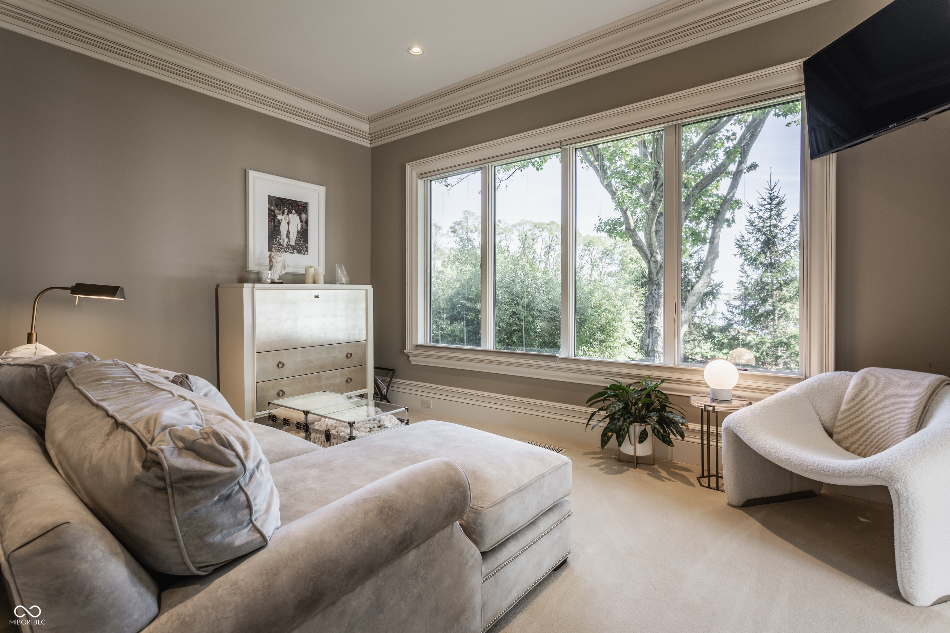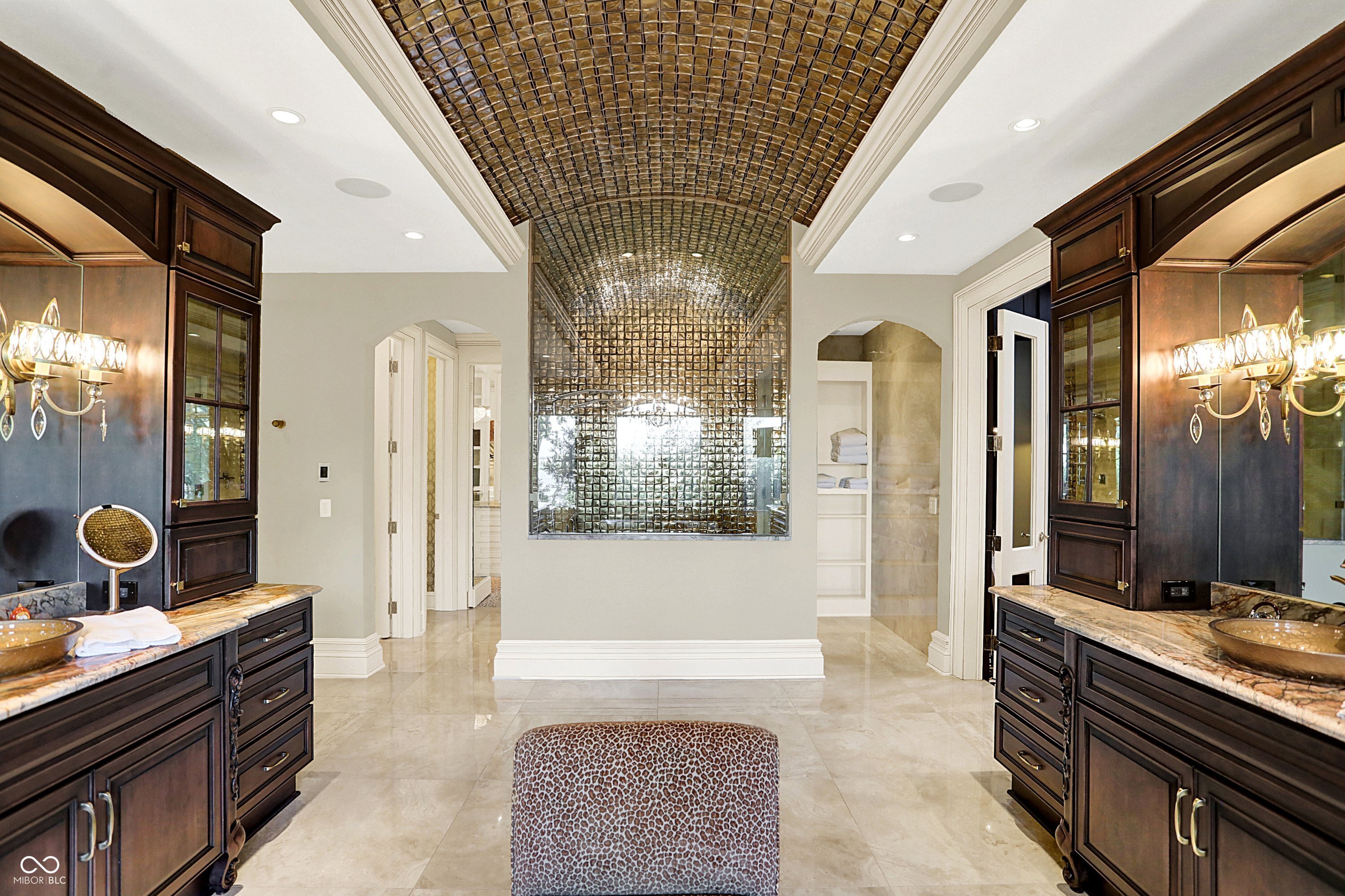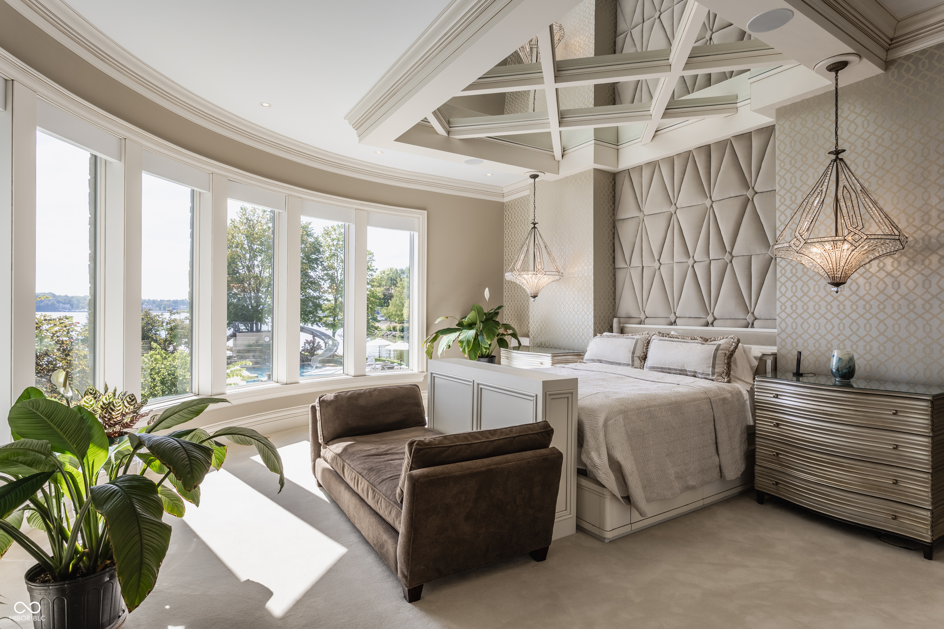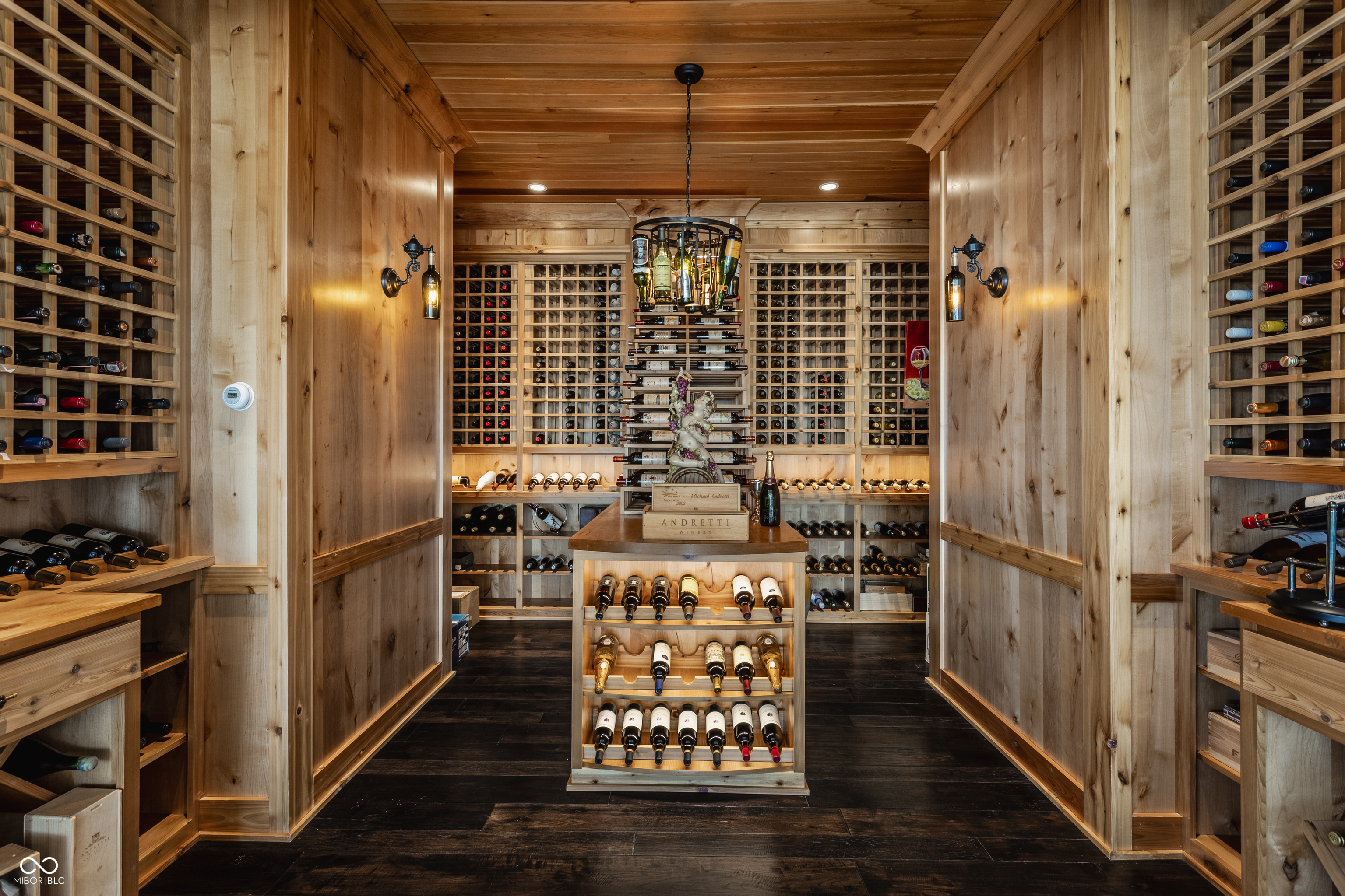 Set on 5.23 PRIVATE ACRES with 570' of pristine Geist Reservoir shoreline, this 21,000 sq ft gated waterfront estate redefines Midwestern luxury. A gas-lit, tree-lined drive leads to The Andretti Estate, featuring 9 bedrooms, 12 bathrooms, 7 fireplaces & surrounded by manicured lawns, wooded trails & sweeping open-water views. Inside, craftsmanship & technology merge seamlessly with integrated automation, a three-level elevator & advanced security enhancing everyday life. The main level unfolds with breathtaking vistas from every gathering space, including a fireside study that leads to the estate lounge with bar, billiards area & sitting rooms. The culinary space showcases dual kitchens: a discreet caterer's kitchen is steps away from the primary, featuring commercial-grade appliances, a 14' island, and seamless flow to a 38' heated veranda with grilling area, retractable screens, and sweeping lake views. An elegant anteroom leads to the private owner's wing with a relaxing reading room & coffee nook. A double-sided fireplace is shared with the primary bedroom, its curved walls framing lake views through a full wall of windows. A spa bath rests beneath a glass-tiled barrel ceiling, while 650 sq ft of closet space completes the suite. The upper level offers two wings, one with a loft & 2 en suite bedrooms, the other a guest wing with kitchen, living room, 2 en suite bedrooms, laundry & garage access. The resort-style walkout level presents a 15-seat bar, 700 bottle wine cellar, theater, arcade, billiards room, fitness studio, 4 bedrooms, 5 baths & 4 exterior exits. The outdoor space features a 50' gunite pool with slide, jacuzzi, waterfalls, fire features, multiple patios, a children's play cottage with HVAC & a 50' three-slip boat dock. A newer carriage house includes two 900 sq ft apartments, each with a kitchen, en suite bedroom, living room, laundry & 2-car garage. 5,500 sq ft of climate-controlled garage space with 12+ bays completes this unparalleled estate.