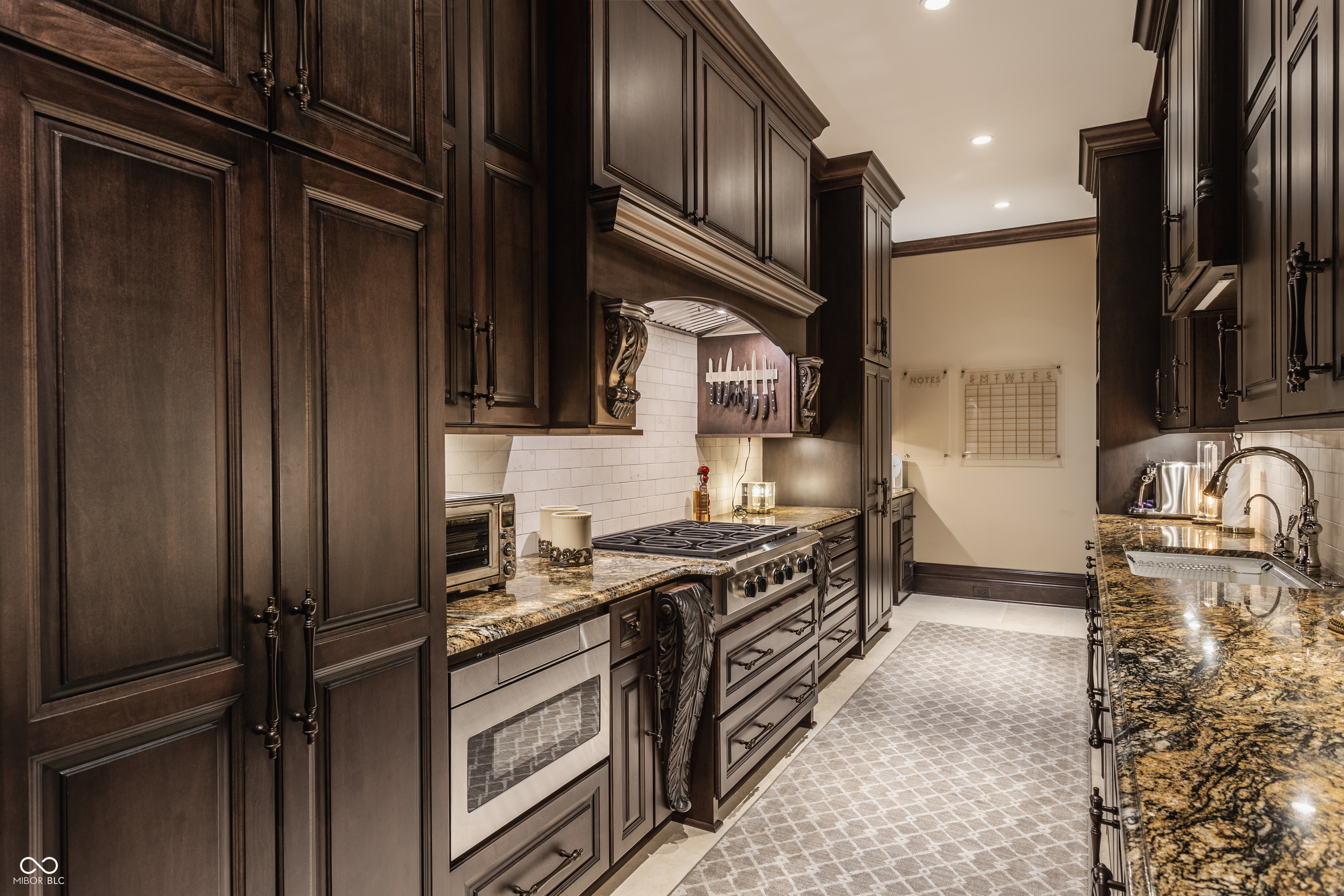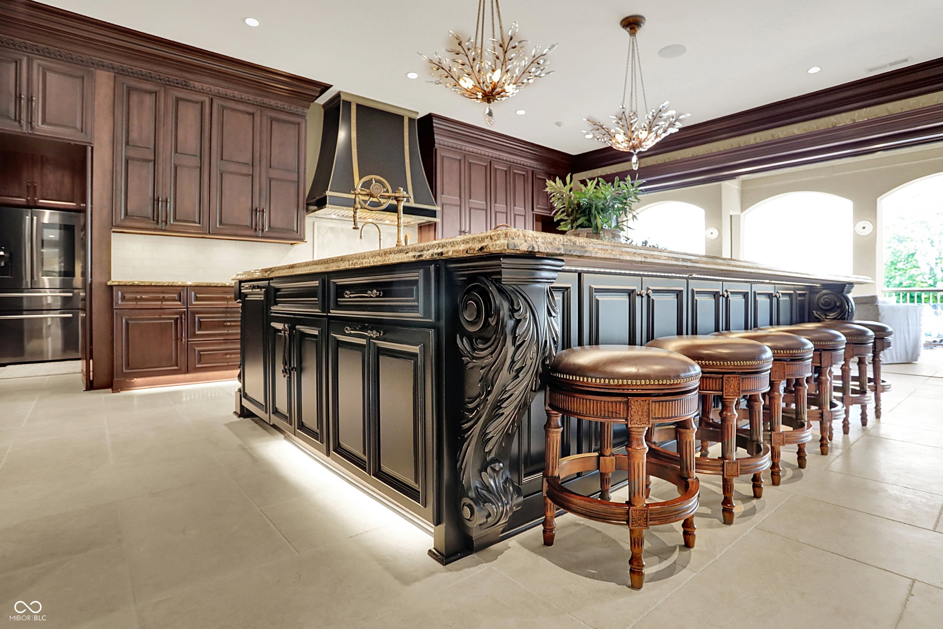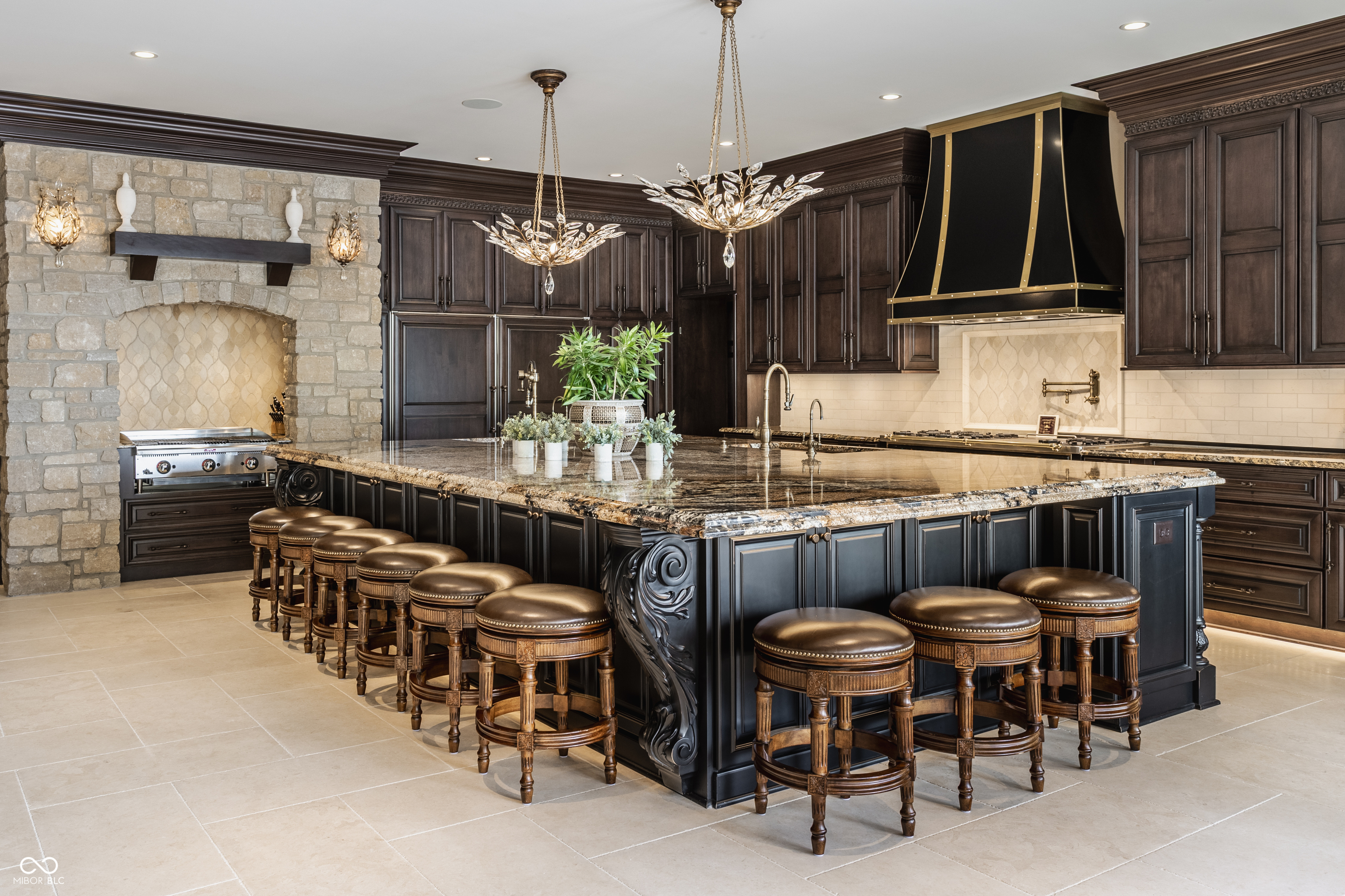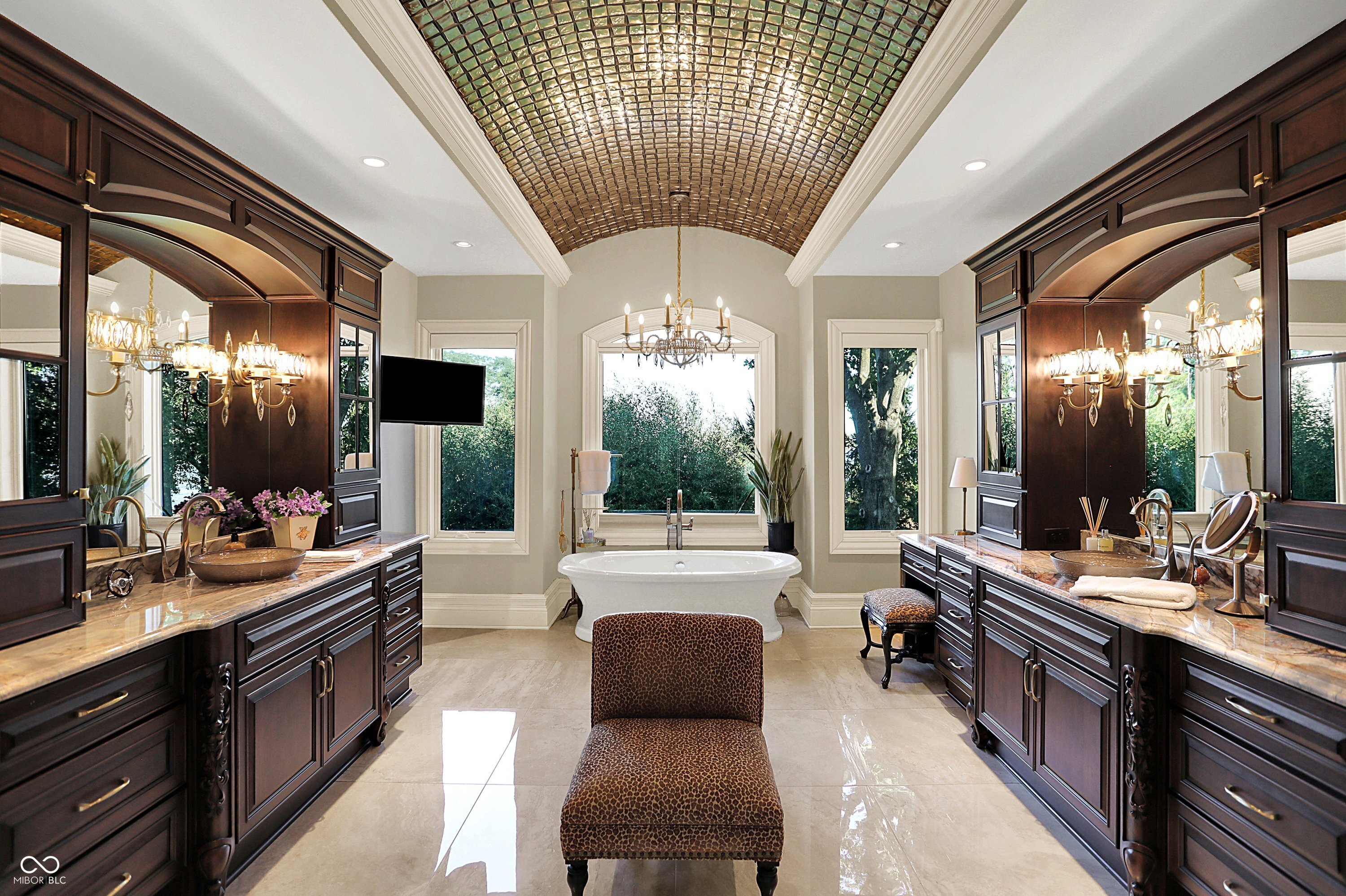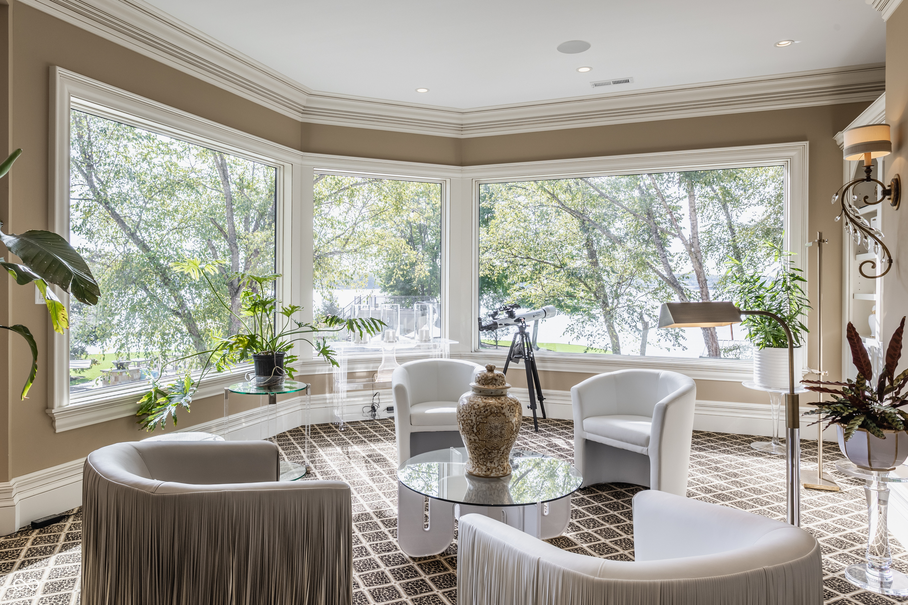 Set on 5.23 PRIVATE ACRES with 570' of pristine Geist Reservoir shoreline, this 21,000 sq ft gated waterfront estate redefines Midwestern luxury. A gas-lit, tree-lined drive leads to The Andretti Estate, featuring 9 bedrooms, 12 bathrooms, 7 fireplaces & surrounded by manicured lawns, wooded trails & sweeping open-water views. Inside, craftsmanship & technology merge seamlessly with integrated automation, a three-level elevator & advanced security enhancing everyday life. The main level unfolds with breathtaking vistas from every gathering space, including a fireside study that leads to the estate lounge with bar, billiards area & sitting rooms. The culinary space showcases dual kitchens: a discreet caterer's kitchen is steps away from the primary, featuring commercial-grade appliances, a 14' island, and seamless flow to a 38' heated veranda with grilling area, retractable screens, and sweeping lake views. An elegant anteroom leads to the private owner's wing with a relaxing reading room & coffee nook. A double-sided fireplace is shared with the primary bedroom, its curved walls framing lake views through a full wall of windows. A spa bath rests beneath a glass-tiled barrel ceiling, while 650 sq ft of closet space completes the suite. The upper level offers two wings, one with a loft & 2 en suite bedrooms, the other a guest wing with kitchen, living room, 2 en suite bedrooms, laundry & garage access. The resort-style walkout level presents a 15-seat bar, 700 bottle wine cellar, theater, arcade, billiards room, fitness studio, 4 bedrooms, 5 baths & 4 exterior exits. The outdoor space features a 50' gunite pool with slide, jacuzzi, waterfalls, fire features, multiple patios, a children's play cottage with HVAC & a 50' three-slip boat dock. A newer carriage house includes two 900 sq ft apartments, each with a kitchen, en suite bedroom, living room, laundry & 2-car garage. 5,500 sq ft of climate-controlled garage space with 12+ bays completes this unparalleled estate.