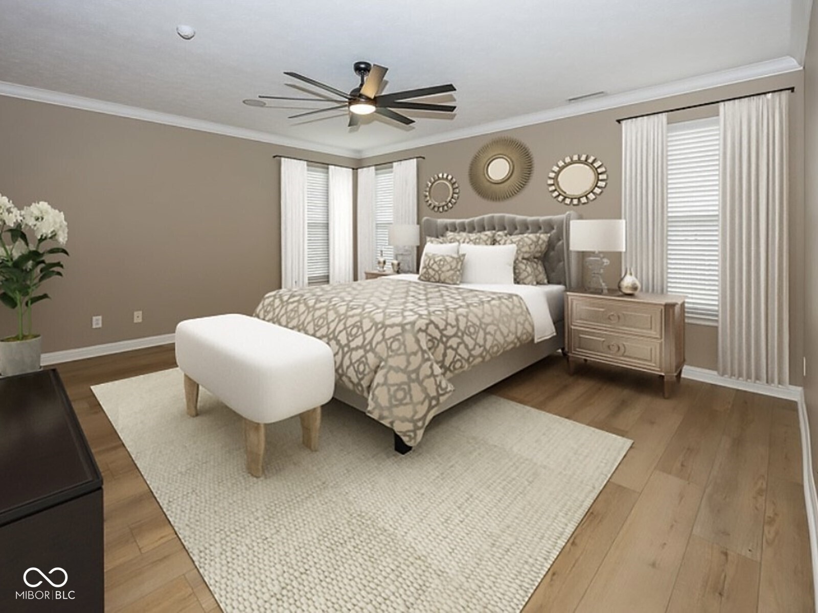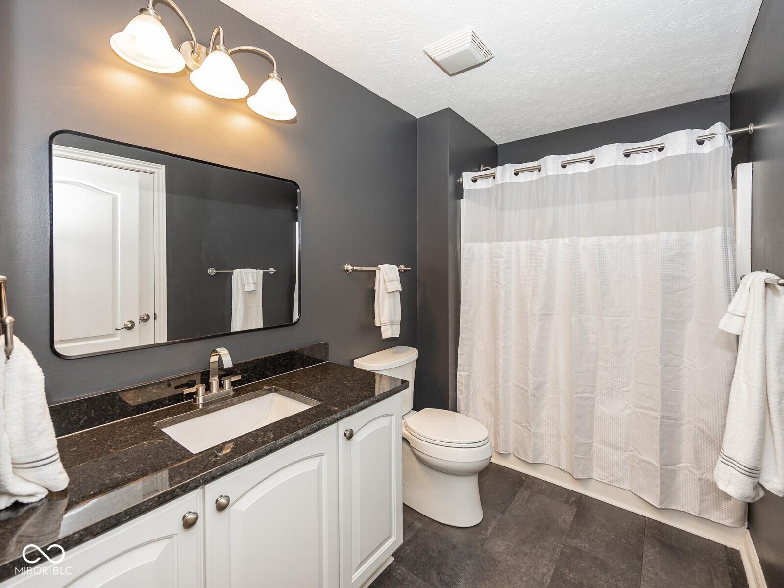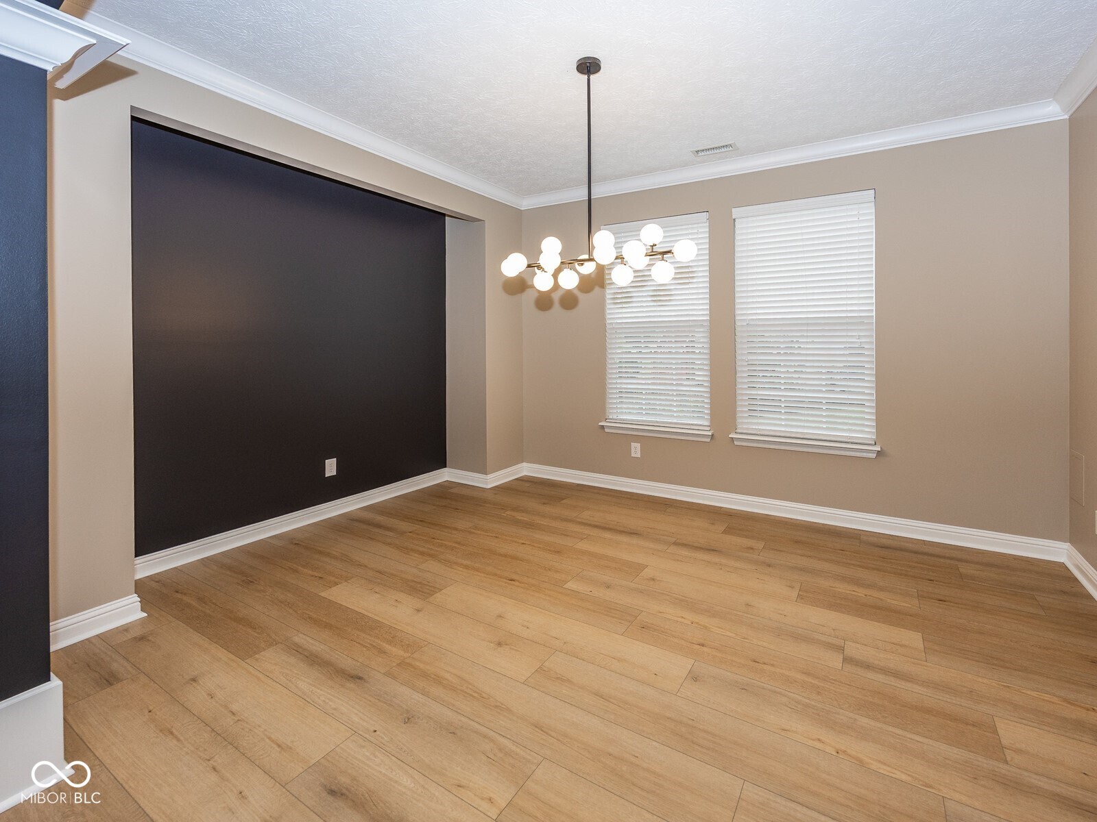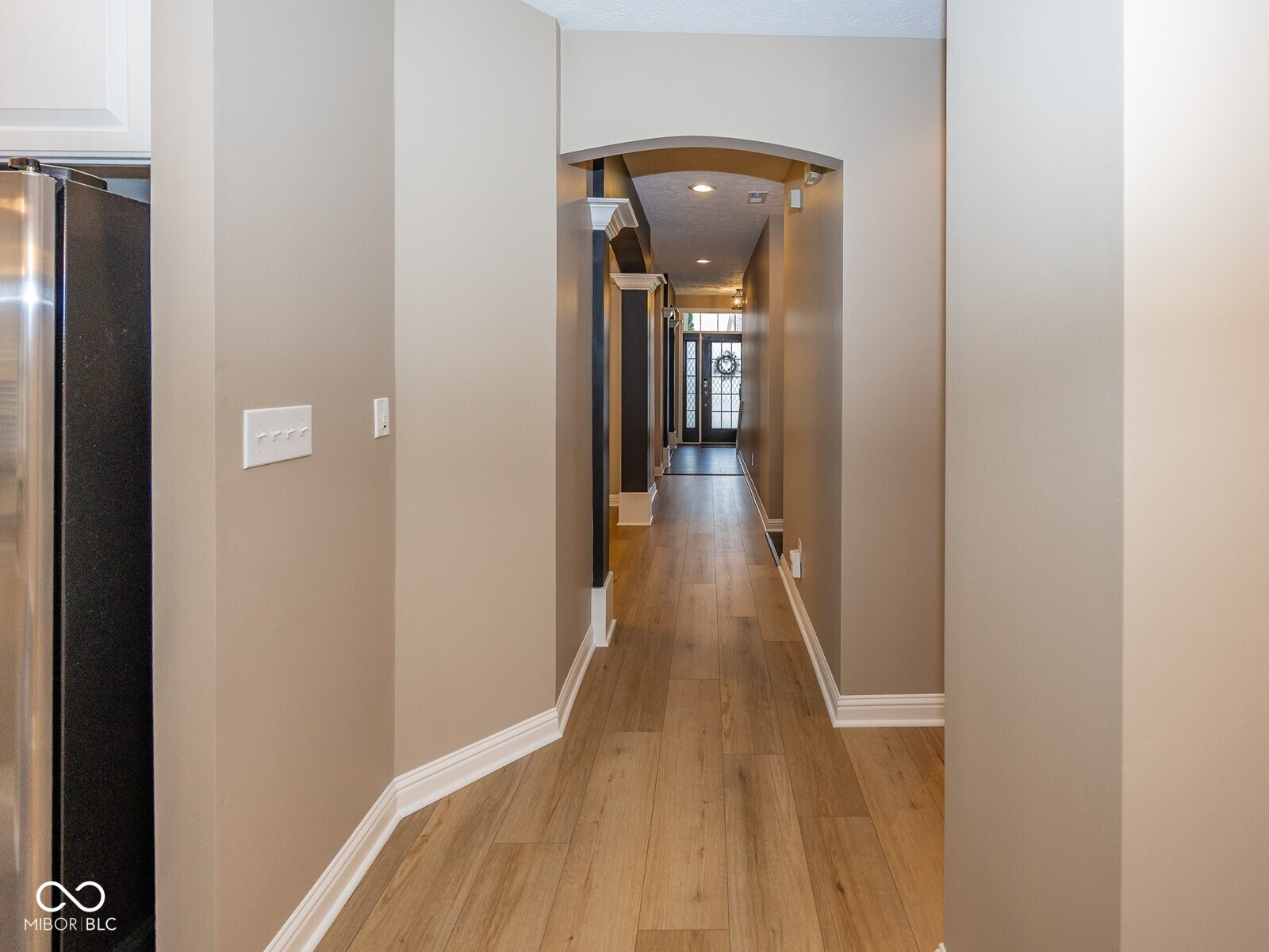 This stunning move-in-ready former model home in highly sought-after Chapel Woods offers timeless design and modern updates throughout. Featuring elegant crown molding, columns, arched entryways, and 9-foot ceilings, this home includes all-new waterproof vinyl plank flooring on the main level, new carpet upstairs, fresh paint and trim, updated lighting fixtures, and refreshed landscaping. The updated kitchen features granite countertops, a stylish backsplash, stainless steel appliances, a bar stool area, a separate eat-in Breakfast Area and a nice-sized pantry. The bathrooms have all been updated with granite counter tops and modern finishes. The spacious layout includes a large family room with a gas log fireplace, formal dining w niche area, a main level office with detailed trim work, and a main-level primary suite with crown molding, a walk-in closet, and a luxurious updated bathroom featuring double vanities, a garden tub, and a separate shower. Upstairs you'll find three oversized bedrooms, all with walk-in closets, a large bonus room with a built-in entertainment center. The mudroom off the three-car garage provides ample storage, and the third bay is a hobbyist's dream with a custom closed off workshop and lots of built-in shelving. Outdoor living spaces include a massive covered front porch and a back patio perfect for relaxing or entertaining. Many updates include a new roof (2022), HVAC system (2022), upstairs windows (2024), exterior paint (2024), water heater (2025), new flooring (2025), interior paint (2025), new lighting (2025) and granite (2025). Additional features include an irrigation system, generator hookup, and security system. Located close to dining, shopping, and Noblesville Schools, Chapel Woods offers a neighborhood pool, playground and golf-cart-friendly streets. With every detail updated, this home is completely move-in ready!