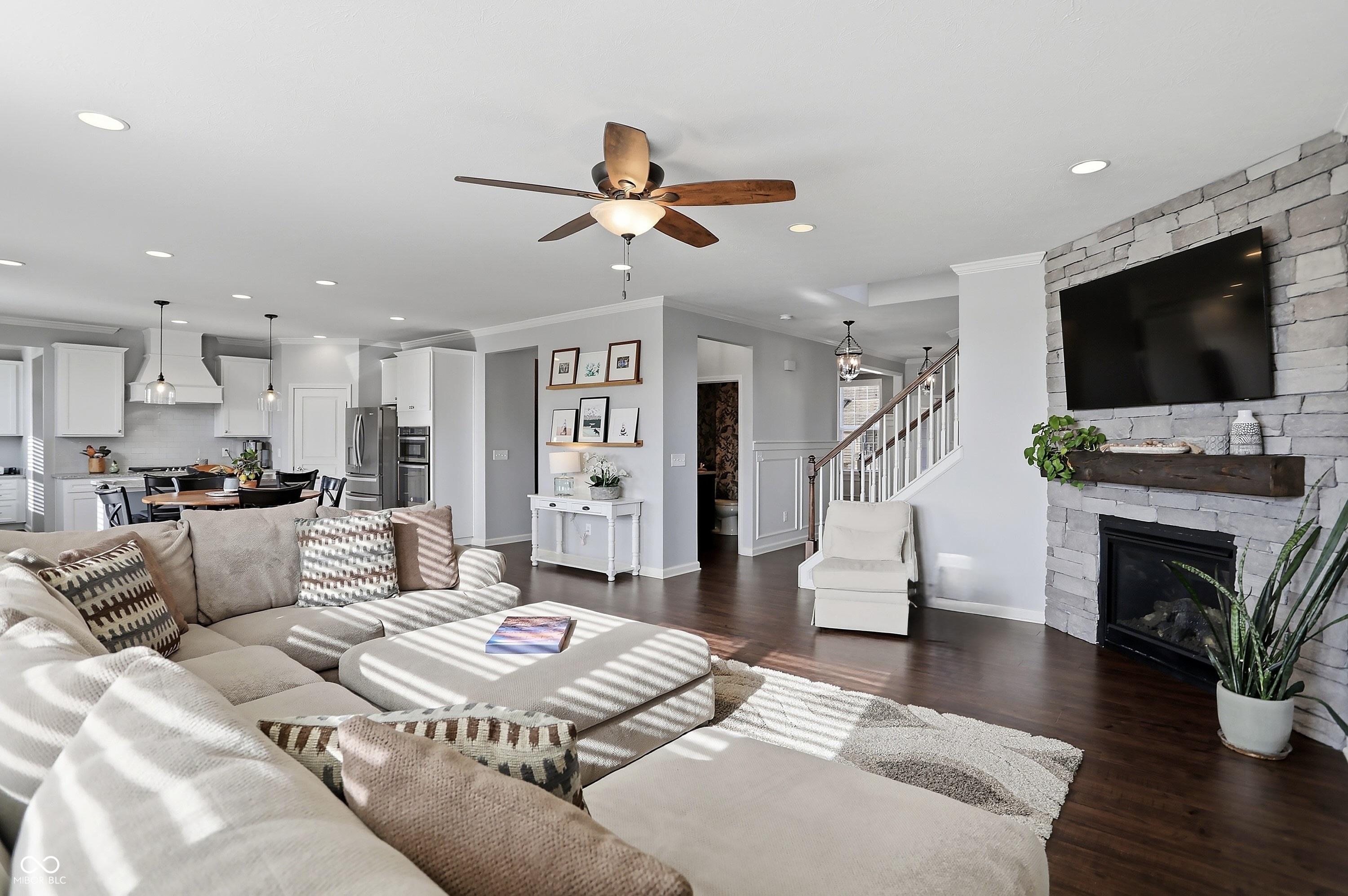 Stunning new listing in popular Hunters Run just hit the market & it's loaded w/custom updates! Located on a quiet CUL-DE-SAC, the home is nestled on a large FENCED-IN homesite that backs up to a large common area, perfect for playing on a huge open green space within sight from the home! Offering 4850+ sq ft, this stunning home boasts 5 bedrooms, 4.5 baths, custom closets & pantry, incredible custom trim work, custom lighting, FINISHED FULL BASEMENT & backyard oasis with YARD IRRIGATION SYSTEM! The main level features a stately office w/glass doors, elegant dining rm w/wainscoating & accessible to the kitchen through a beautiful butlers pantry, the spacious great rm includes a wall of windows, gas fireplace & is open to a fully equipped gourmet kitchen w/center island, SS appliances, WI pantry, plenty of cabinet & countertop space. The kitchen also offers access to a convenient planning center, mud rm & 2nd OFFICE! The upper level includes a large loft area w/bookshelves, spacious owners bedroom w/13' LONG CUSTOM WI CLOSET & luxurious spa bathroom w/dual bowl vanity & elegant WI shower! The upper level also features 3 additional bedrooms, 2 secondary bathrooms (bedroom 2 includes a private bath), laundry rm & plenty of closet space! The finished basement is AMAZING, packed w/custom enhancements & includes a stunning bar area, family rm w/built-in entertainment area & custom backlighting, large exercise rm, huge 5th bedroom w/egress window & closet, full bathroom, XL storage rm & sep utility rm + oversized storage closet w/shelving. The HUGE fenced-in backyard features a large paver patio, pergola, outdoor grilling area, fire pit & accessible to the gigantic green space/common area behind the home! You will love the neighborhood amenities - community pool, playground, basketball & tennis courts! Hunters Run offers an A+ location - close to schools, shopping, dining, entertainment, Ruoff Music Center, interstates & more! OPEN HOUSE FRI 4-6PM.