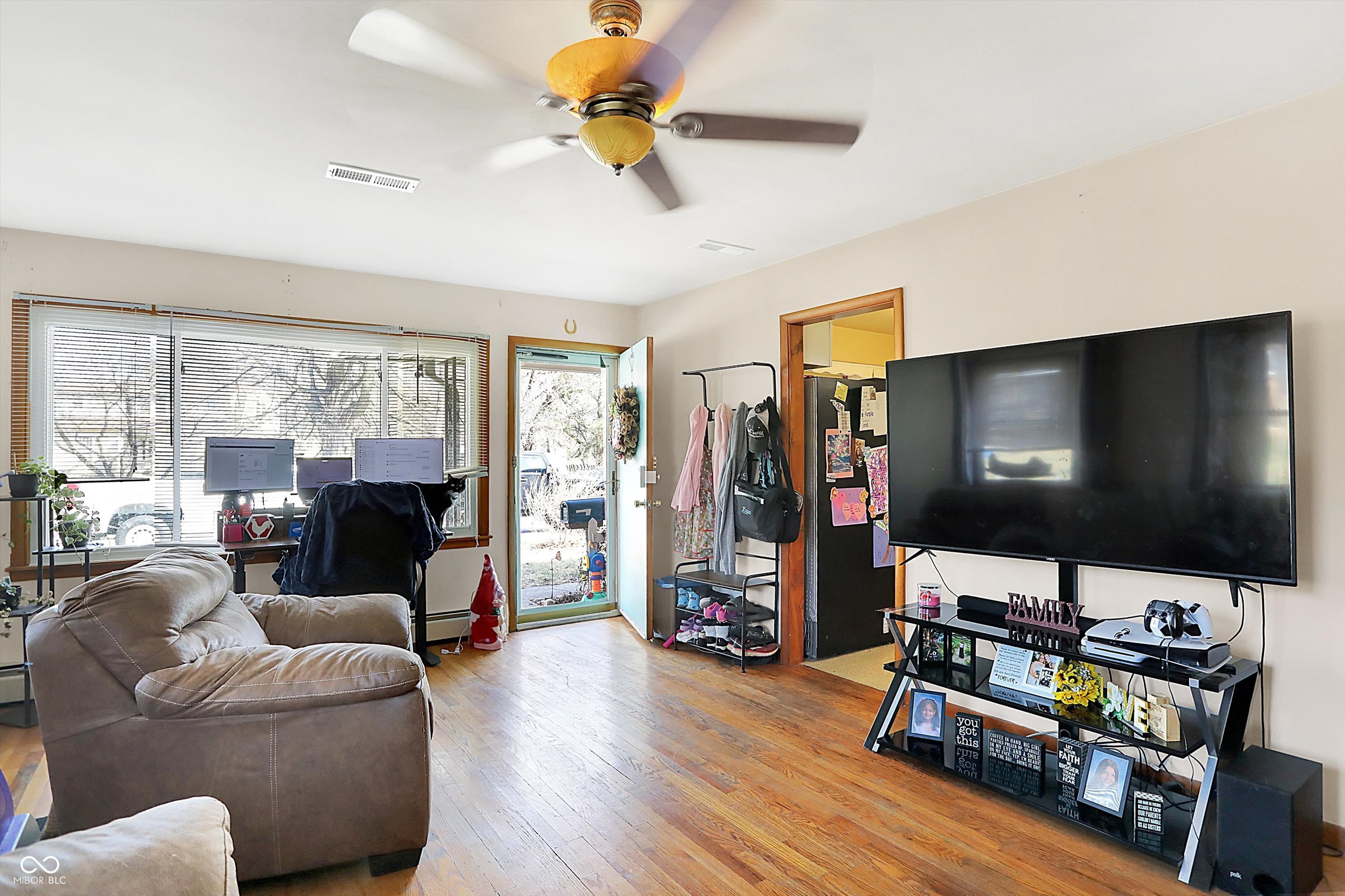 Welcome to this charming brick ranch home in the heart of Fortville! This beautifully maintained 3-bedroom, 1.5-bathroom home offers the perfect combination of comfort, style, and convenience. As you step inside, you'll be greeted by stunning wood floors that flow throughout the living area, creating a warm and inviting atmosphere. The spacious bedrooms provide plenty of room for relaxation and personalization.. The home features a newly installed furnace and air conditioner. Cooking and entertaining are a breeze in the large kitchen, which boasts ample prep space and a generous eat-in area. Step outside to discover the park-like backyard, complete with a fantastic covered patio-ideal for outdoor dining, relaxation, or entertaining. Located in a fantastic neighborhood, this home is within walking distance of Fortville's wonderful amenities, including shops, restaurants, and parks.