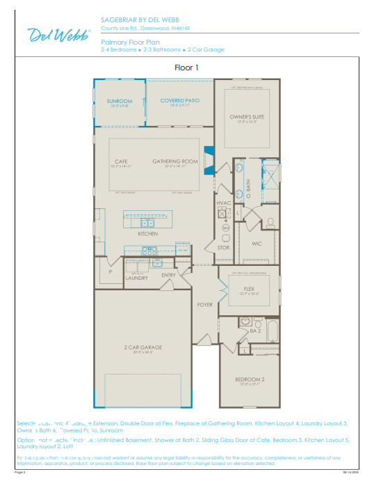 Experience the elegance of the Palmary floorplan in Sagebriar by Del Webb, a premier 55+ community. This thoughtfully designed home features a modern kitchen with 42" Landen white cabinetry, Calacatta Elysio Quartz countertops, a built-in stainless steel oven and microwave, gas cooktop, and a spacious island-ideal for both everyday meals and entertaining. The kitchen flows seamlessly into the gathering room with a cozy fireplace with a granite surround, as well as a charming cafe dining area, creating a warm and open living space. Step outside to the covered patio from your sunroom, perfect for relaxing or hosting guests. The luxurious owner's suite offers a peaceful retreat, complete with a tiled shower, double-sink vanity with quartz countertops, and a generous walk-in closet. The secondary bedroom enjoys easy access to a conveniently located full bath with a shower just steps from the door-perfect for guests or everyday use. A versatile flex room, enclosed with doors and situated just off the foyer, can serve as a home office, study, or additional bedroom to suit your needs. Luxury vinyl plank flooring runs throughout the main areas of the home, offering both timeless beauty and long-lasting durability. The Sagebriar by Del Webb community is where lifestyle takes center stage. Residents enjoy TV streaming and internet included, plus convenient seasonal opening and closing of irrigation systems. The resort-style amenities include indoor and outdoor pools, a state-of-the-art fitness center, pickleball and bocce ball courts, and a clubhouse featuring social programming led by a full-time Lifestyle Director. A high-tech simulation room offers virtual golf and other sports, while miles of walking trails, pocket parks, and a dog park encourage an active, outdoor lifestyle. Sagebriar by Del Webb offers the perfect blend of tranquility, activity, and convenience.
