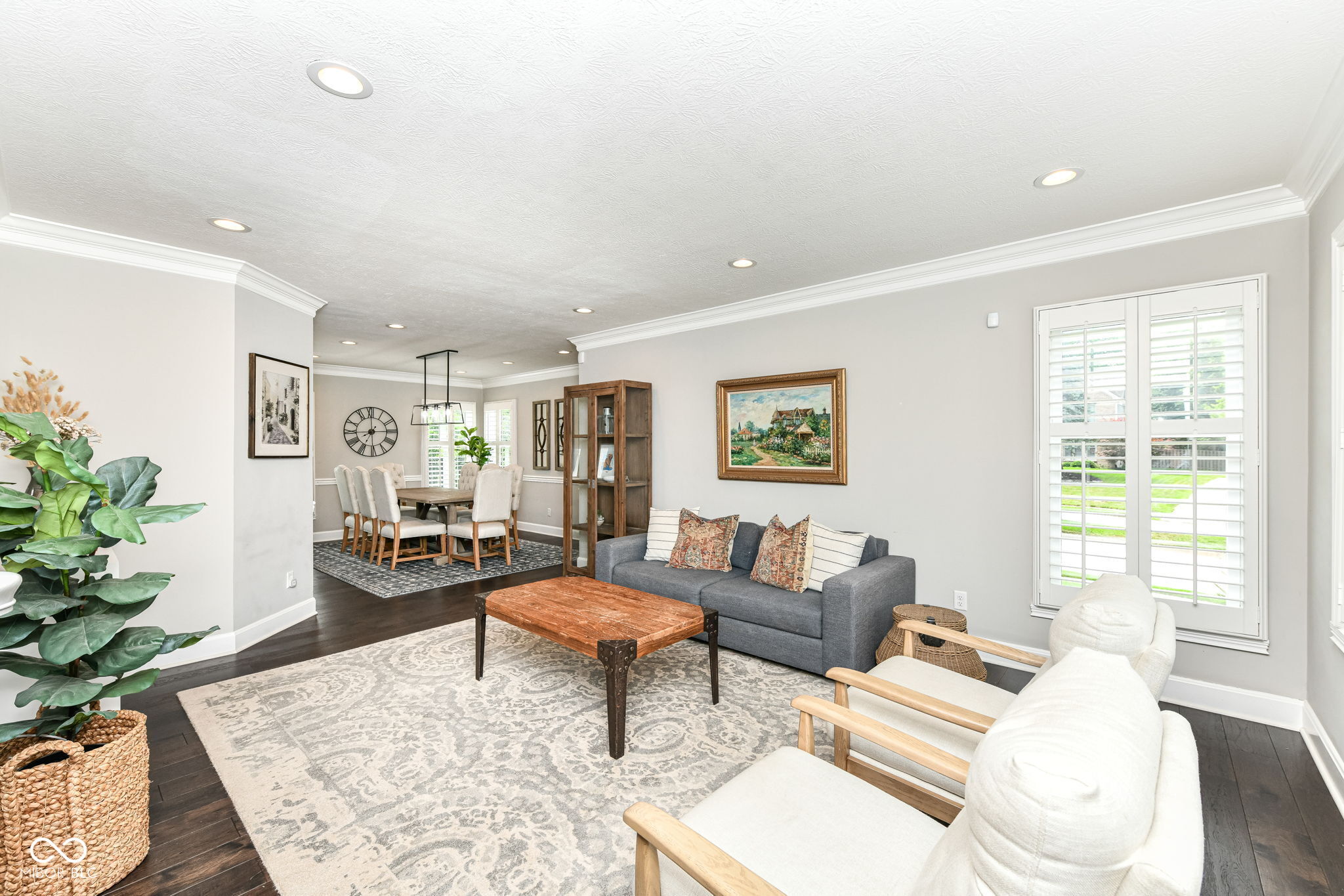Beautifully updated home in one of Carmel's most desirable neighborhoods, Williamson Run! This 4 bedroom, 3.5 bath home features a spacious master suite with vaulted ceilings, a main floor office, and a chef's kitchen with marble countertops & custom lighting. Enjoy soaring ceilings in the 2-story living room, plantation shutters throughout, and custom millwork. The finished basement adds flexible living space, while the backyard is a private retreat with a paved patio, motorized awning, all-weather TV mount, and 30+ mature arborvitae trees. New roof, gutters, and copper bay window flashing (2022) providing peace of mind for years to come. Neighborhood amenities include a pool, clubhouse, tennis/pickleball courts, and playground. Perfectly located near the Monon Trail, I-465, and Keystone Avenue. Don't miss this move-in ready gem in Williamson Run!