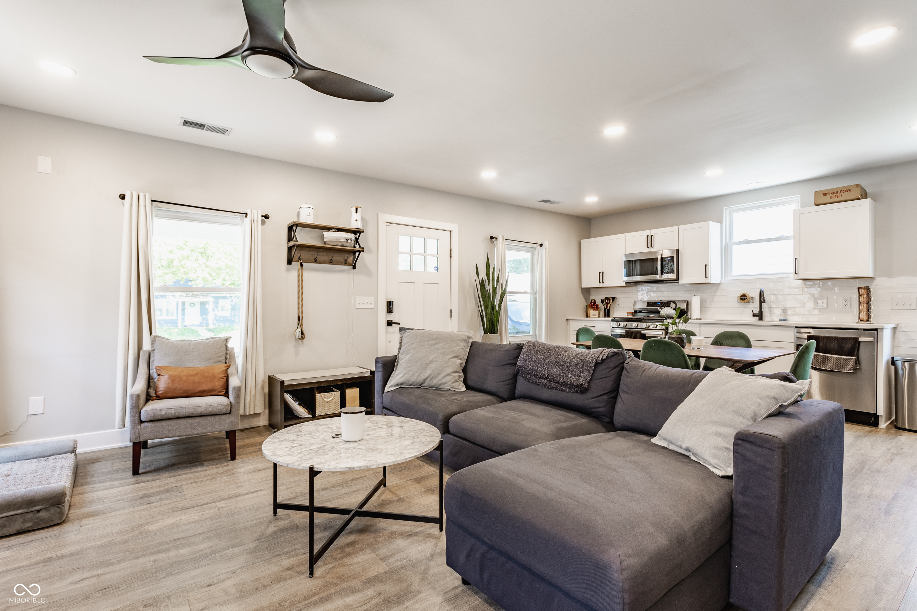 Curb appeal galore! Completely rebuilt and updated (2021) home awaits those seeking a comfortable and inviting living space. Two bedrooms and one bath with a generous open kitchen/dining/living area. The kitchen is designed for both culinary exploration and casual gatherings, featuring stylish shaker cabinets complemented by granite counters with new appliances. Washer and Dryer included. Stepping outside, you'll discover an inviting porch, perfect for relaxing and enjoying the neighborhood ambiance, as well as an outdoor living space that extends your entertainment options. The large/open backyard is ideal for gardening, recreation, or simply unwinding. Close to all things Broad Ripple. Steps from Loom and Gold Tea. Easy access to the Monon trail and 15 minutes to downtown Indy! Welcome home!