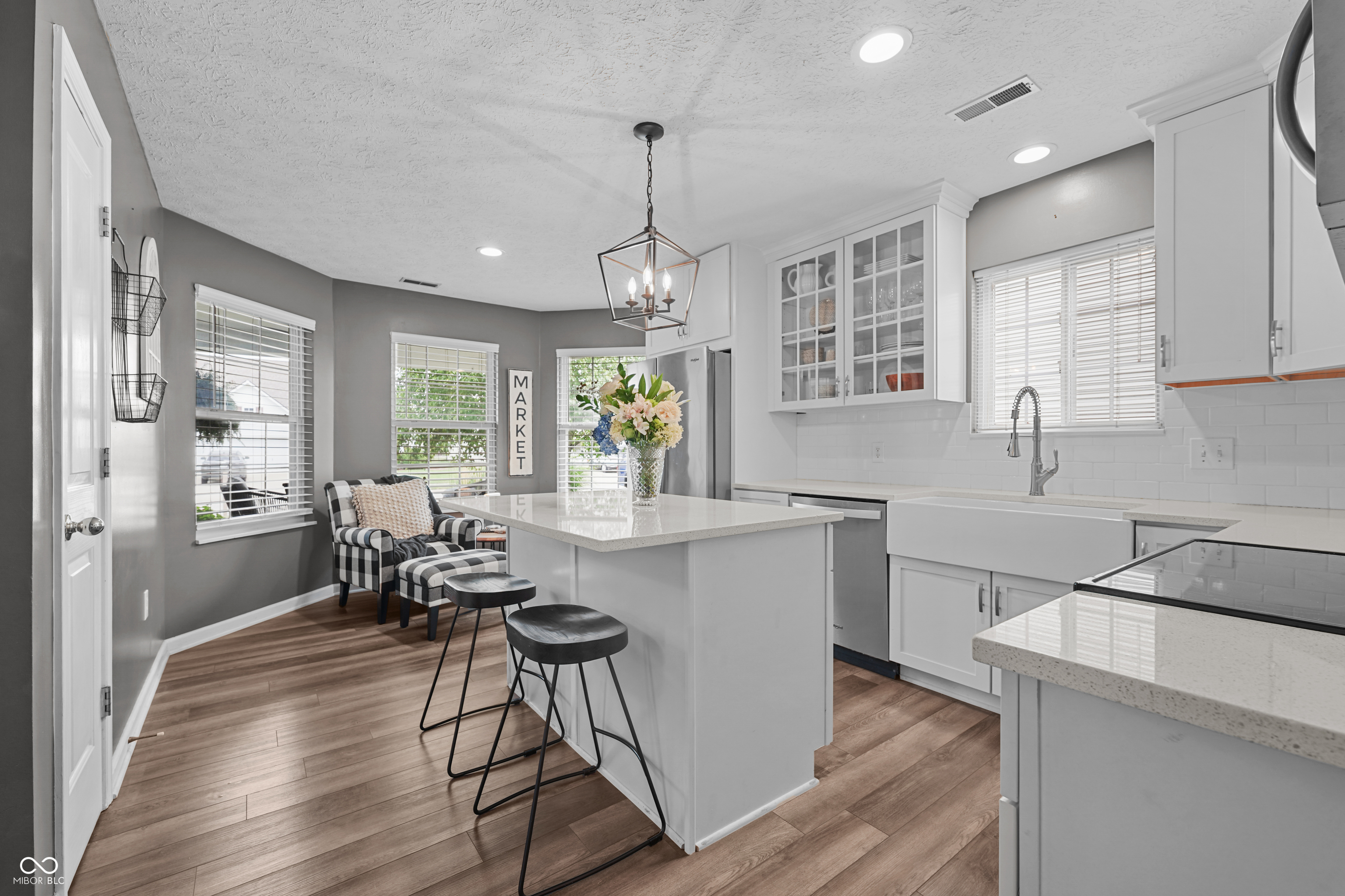 Elegance & tranquility awaits in this gorgeous 3bed/2bath Indigo Lake ranch located in the heart of Fishers! A spacious foyer with newer, high-end LVP flooring greets you as you make your way into this expertly-designed open floorplan w vaulted ceiling you'll swear is from a magazine. Ready for cooler temps? You'll love getting cozy on this plush carpet next to the alluring wood-burning fireplace. Getting hungry? Step into a chef's dream...a fully-renovated center island kitchen w soft-close cabinetry, farmhouse single-basin sink w top-of-the-line faucet, & pristine white quartz countertops boasting plenty of room for meal-prep & munching. You'll quickly understand this home has been meticulously cared-for w intelligent/classy updates including the new front door, exterior lighting, primary bath, siding, windows, etc. Two-car garage featuring built-in shelving & pull-down attic access for more storage. Love to lounge outdoors? Check out the fully-fenced in back & side yard complete with newly-renovated covered, side patio boasting upscale Trex decking & tasteful stone work w pavers. Need more space? How about an expansive covered front porch w paddle ceiling fan perfect for lounging in comfortable furniture. These outdoor spaces compliment the neighborhood vibe perfectly as everything is centered around the immaculate, tranquil pond. Located in the epicenter of Hamilton County's great attractions! Less than 4 miles to ALL of the following: Downtown Fishers & Noblesville, Fishers District, 6 highly-rated golf courses & Top Golf, IKEA, Conner Prairie, Costco, Ruoff Music Center, US 37 & I-69, and the new & exciting Fishers Event Center! And award-winning HSE schools! If you're looking to experience all of what Hamilton County has to offer while living in a gorgeous home in a peaceful neighborhood, this is your home! Priced to sell, come quickly!